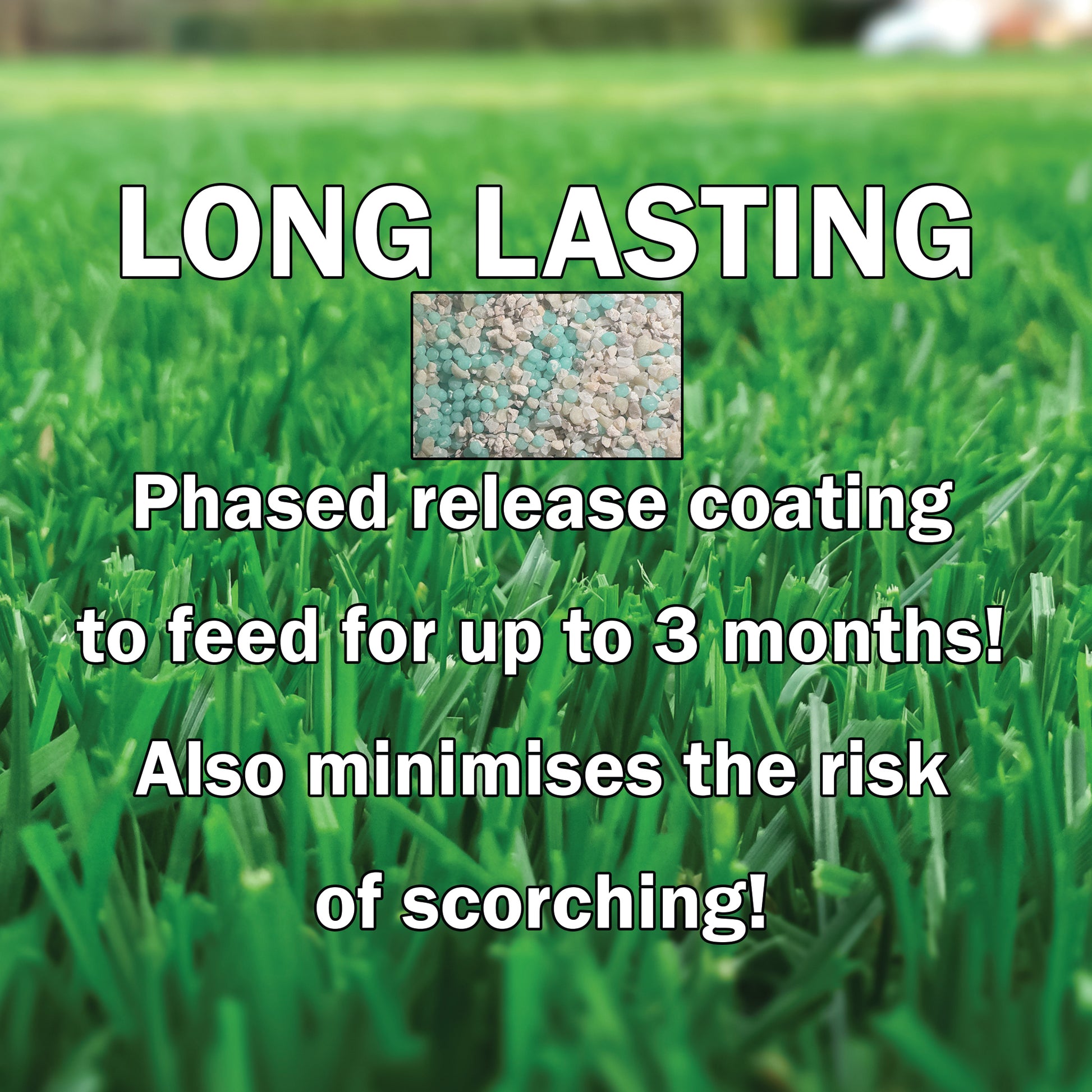 Pre Seed Luxe has a slow release coating to allow a feed lasting up to 90 days. After this we recommend applying one of our seasonal feeds.